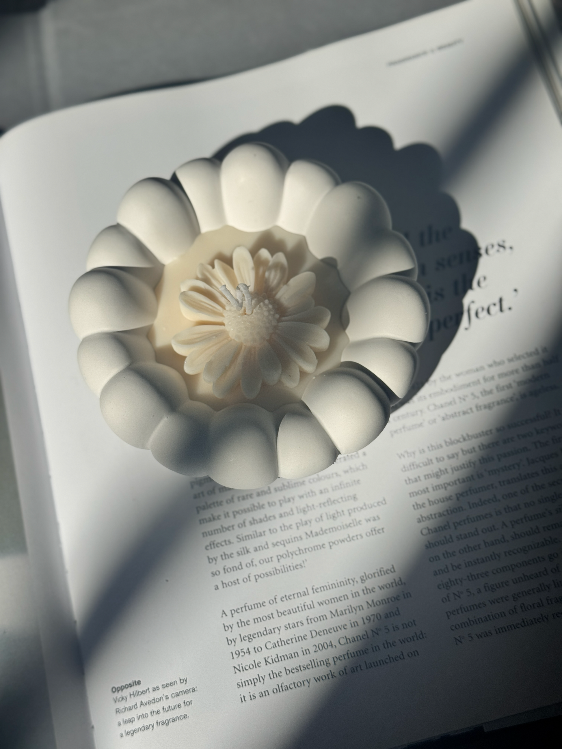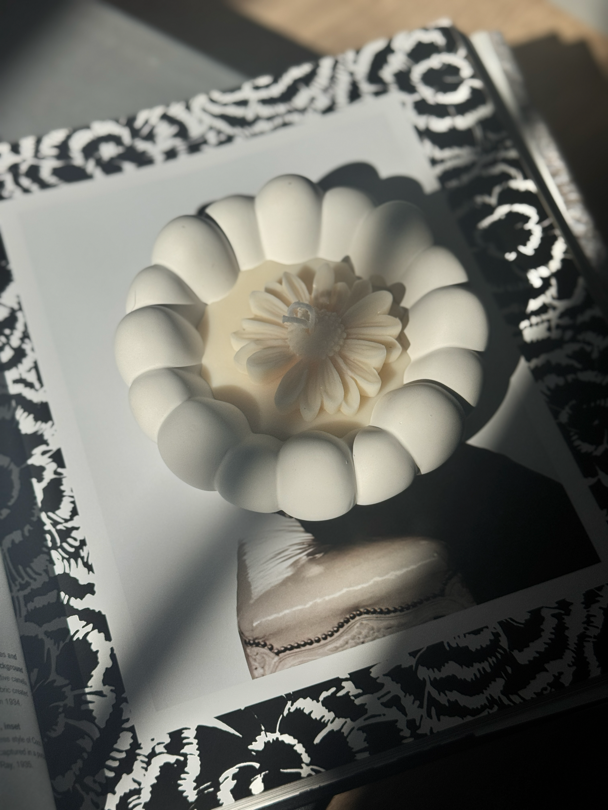 <p>Ein zauberhaftes Duo aus zarter Blüte und samtiger Form – unsere Daisy on Clouds Kerze vereint eine handgegossene Gänseblümchen-Kerze aus feinstem Sojawachs mit einer eleganten, wolkenförmigen Keraflott-Schale. Ein wahrer Blickfang auf jedem Tablett, Regal oder Esstisch!</p>