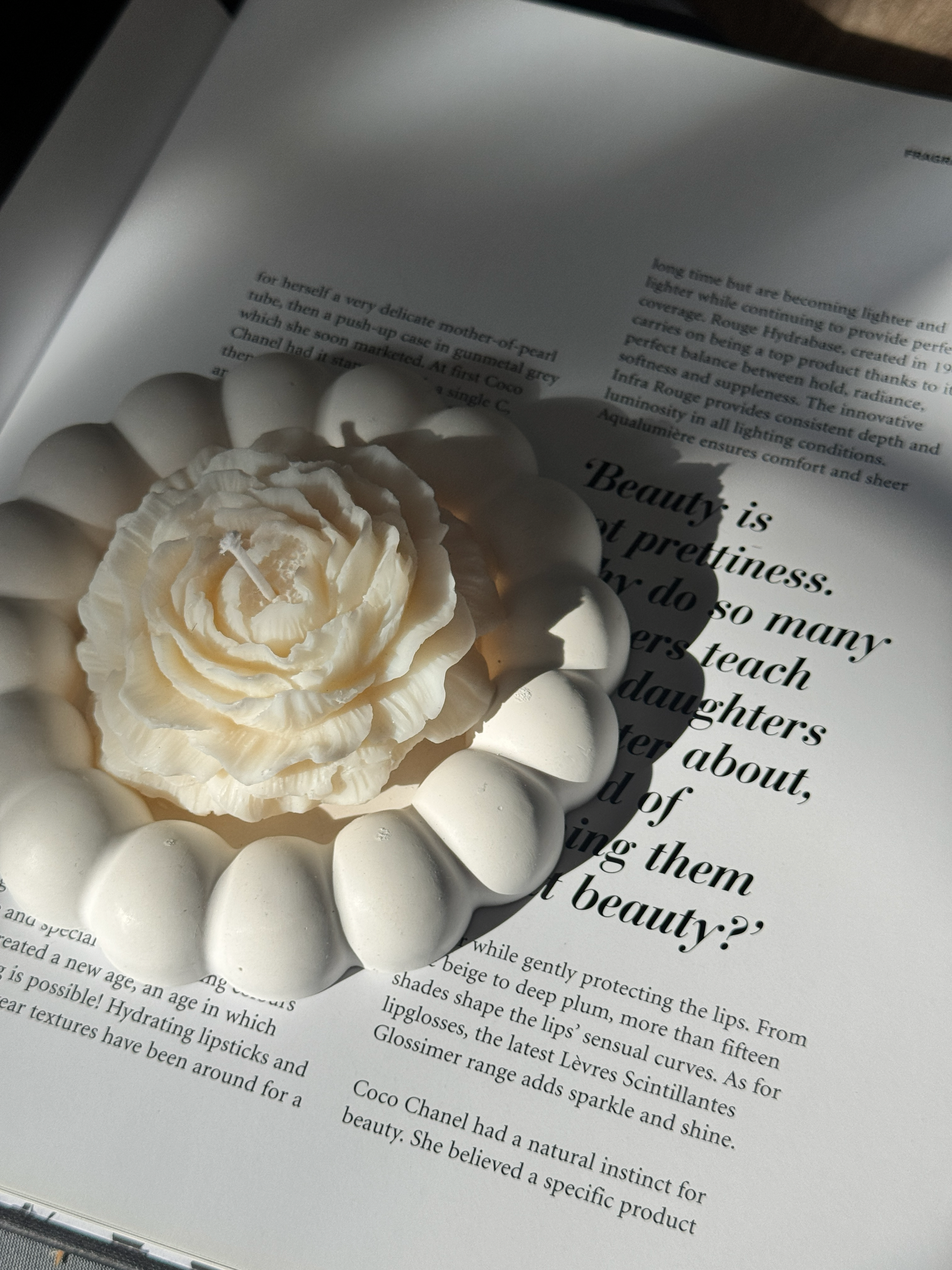- Kerze: Handgegossene Rosenkerze aus hochwertigem Sojawachs